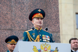 Принимал Парад 1-й заместитель командующего 49-й общевойсковой армии, генерал-майор Рафаэль Равильевич Насыбулин.