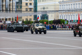 Затем на площадь выехала механизированная колонна современной боевой техники, состоящей на вооружении Российской Армии. В этом году – это более 30 единиц: бронеавтомобиль «ТИГР-М», «БТР-80» и «БТР-82-А», зенитная установка, противотанковый ракетный комплекс «Штурм-С», оперативно тактический ракетный комплекс «Искандер-М», спецавтомобиль «ЗСТС Ахмад», автомобили радиационной и химической разведки и другая техника.