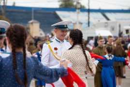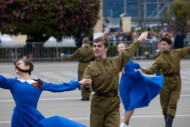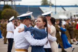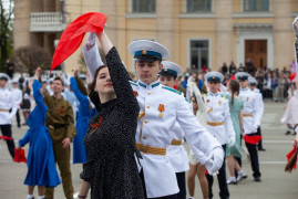 Завершился парад «Вальсом Победы». Под военные песни в вальсе закружились около тысячи парней и девушек, в том числе и кадеты 11-х классов Ставропольского президентского кадетского училища.