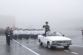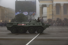 Затем на площадь выехала механизированная колонна, в этом году – это более 30 единиц техники: спецавтомобили «Рысь», системы залпового огня «Ураган», системы «Град», ракетный комплекс «Искандер-М» и другая военная техника, представляющая боевую мощь нашего региона и страны.