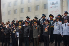 – Поздравляю с 78-й годовщиной Победы советского народа в Великой Отечественной войне! Сегодня, отмечая эту священную дату мы вновь осознаём всю грандиозность победы над нацизмом, – с такими словами поздравления обратился ко всем генерал-майор Р.Р. Насыбулин. – Гордимся, что именно наши отцы, деды и прадеды смогли сокрушить и уничтожить эту тёмную силу. Они воевали, не щадя свои жизни, показали пример благородства и подлинного патриотизма. Мы преклоняемся перед всем, кто насмерть стоял за каждую улицу, каждый дом, каждый рубеж Отчизны. Мы склоняем головы перед светлой памятью павших в борьбе с нацизмом. Великая Победа навсегда останется одной из героических вершин истории нашей страны! Это наш общий народный праздник! Слава народу победителю и его Вооружённым Силам! Ура!