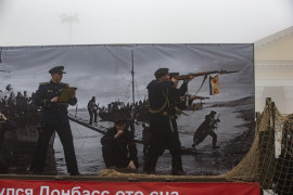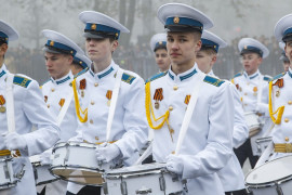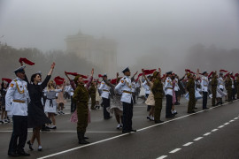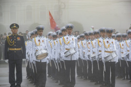 Поcле официальных и торжественных поздравлений вся площадь погрузилась в тишину, нарушаемую лишь звуком метронома. Объявили минуту молчания.