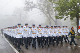 Затем кадеты учебных курсов 8-х и 10-х классов СПКУ, а также кадеты старших курсов АДЕККК отправились на главную площадь краевой столицы, чтобы вместе с войсками Ставропольского гарнизона принять участие в параде Победы.