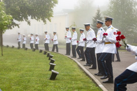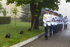 После торжественного построения воспитанники возложили цветы к мемориальным табличкам возле каждого дерева «Аллеи памяти городов-героев и крепости-героя», которая была посажена на территории училища накануне Дня Героев Отечества в 2020 году.