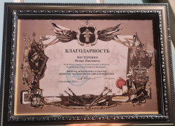 За активное участие в патриотических конкурсах Вооружённых Сил Российской Федерации кадетам 8Д класса Ставропольского президентского кадетского училища Назару Нестеренко и Ивану Попову директор Департамента культуры Министерства обороны Российской Федерации А.В. Горный вручил благодарность.