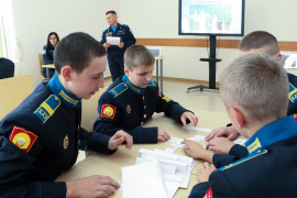 Во время классного часа кадетам необходимо было показать умение выполнять команды, быть единым коллективом, командирам показать свои командные навыки. Прошло занятие в виде квеста на знание воинских подразделений и символики Вооруженных Сил Российской Федерации.