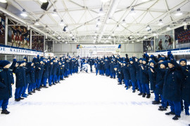 В этом году вместе с кадетами училища почтить память погибших, пришли мальчишки из ХК «Динамо» (Ставрополь)-2006, которые по окончании траурной церемонии показали мастер-класс по хоккею с шайбой, сыграв в формате 3х3 между собой, а на «десерт» показали шоу по исполнению штрафных буллитов.