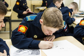 83 кадета из 29 классов решили попробовать свои силы в изобразительном искусстве. От одного класса могла участвовать творческая группа до 4-х человек. Участникам конкурса в течение 2-х часов нужно было нарисовать рисунок или плакат, посвящённый историческим событиям 1943 года – года решающих Побед, также можно было провести параллель с событиями сегодняшнего дня, объединив подвиги и дух воинской славы солдат Советской и Российской армии.
