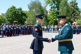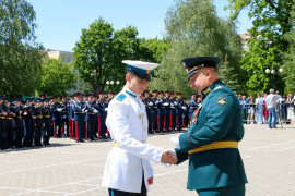 - Дорогие друзья, уважаемые выпускники! Сегодня для вас очень важный момент в жизни. Вы окончили президентское училище. Вы здесь обрели не только знания, но и закалку, вы твёрдо усвоили, что мощь кадетского братства в единстве. Сейчас вы делаете первый шаг в свою будущую жизнь! Желаю вам удачи в достижении своих целей! Уверен, что, продолжив учёбу в высших военных вузах, затем, работая на благо Отечества, вы принесете нашей Родине огромную пользу!