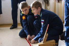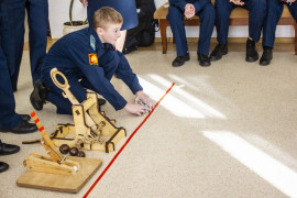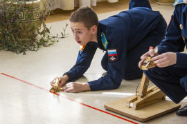 Катапульта – образец первого артиллерийского орудия. На его примере можно изучать работу простых механизмов, способы преобразования одного вида энергии в другой, и методы увеличения приложенной силы. Кадеты соревновались в дальности стрельбы из катапульт.