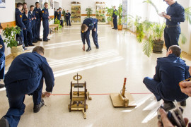 В Ставропольском ПКУ в рамках Фестиваля «Научны среда – 2023» среди воспитанников учебного курса 7-х классов состоялся необычный и интересный конкурс, который назывался «Катапелтай петроболос». В переводе это означает «камнемёт» или катапульта. Греки именовали подобные камнемёты «палинтононами», то есть стреляющими по навесной траектории, или «катапелтай петроболос», то есть буквально «камень против щита».