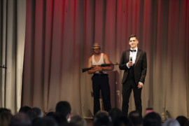 Затем началась концертная программа. В канву театрализованного представления по мотивам трилогии фильма «Крёстный отец» гармонично вплетались творческие номера, которые подготовили кадеты и педагоги 7 курса. Концертная программа совместила в себе юмор, иронию, прекрасную музыку (не обошёлся концерт без виртуозного музыкального сопровождения оркестра СПКУ), танцы, поэзию.