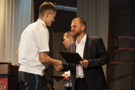 Поздравить выпускников с успешным окончанием училища пришёл Председатель комитета Думы Ставропольского края по образованию, культуре, науке, молодёжной политике, средствам массовой информации и физической культуре Виктор Викторович Надеин. Тридцати одному воспитаннику, лучшим из лучших одиннадцатиклассников, которые отличились в учёбе, спорте, науке, творчестве – он вручил почётные грамоты от комитета Думы.