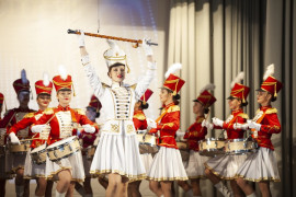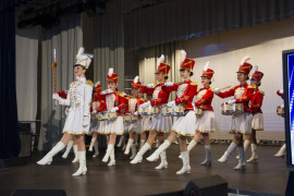 Открыл концертную программу своим творческим подарком «Флагманский марш» ансамбль барабанщиц Ставропольского государственного педагогического института.