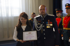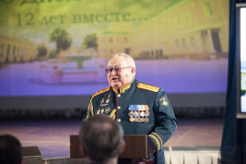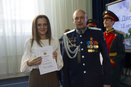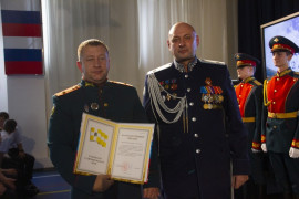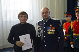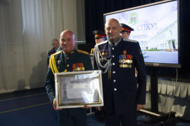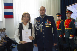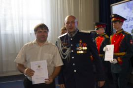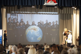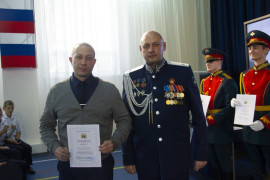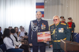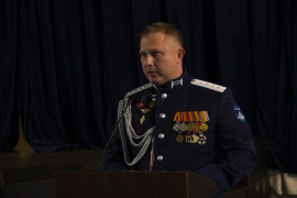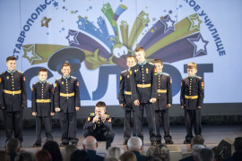 Концертная часть программы сменилась торжественной. Всех с грядущим праздником поздравил начальник Ставропольского президентского кадетского училища, кандидат технических наук, профессор Вячеслав Валерьевич Преснухин.