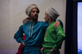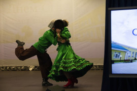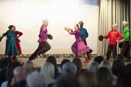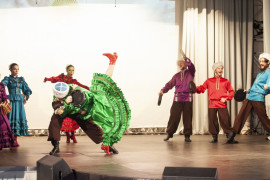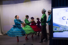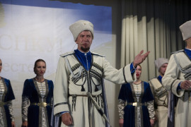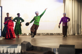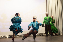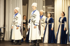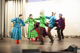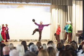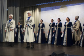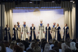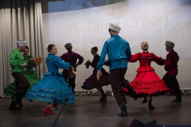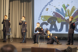 Завершилась концертная программа поздравлением Ставропольского Муниципального казачьего ансамбля песни и пляски «Вольная степь» (руководитель – Заслуженный работник культуры, Почётный деятель искусств Ставропольского края Василий Берченко). Ансамбль выступил с танцем «Казачьи разговоры».