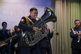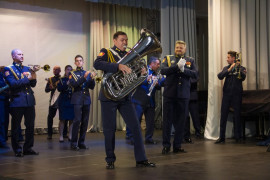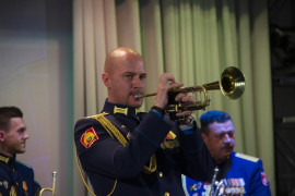 Завершился праздничный концерт ещё одним музыкальным подарком – выступлением оркестра Ставропольского президентского кадетского училища.