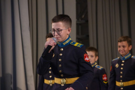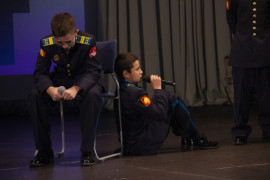 Профессиональных вокалистов на сцене сменили начинающие артисты этого жанра. Песню «Кадетский марш» исполнил Алексей Першин. Кстати, без его старшего брата – кадета 10-х классов Руслана – не обходится ни один концерт в училище.