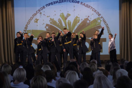 Всю концертную программу блестяще провели яркие и харизматичные ведущие: педагог организатор 6-го учебного курса Оксана Романова и кадеты – победители конкурса «Я – ведущий» – Афанасьев Илья (7Б) и Савельев Богдан (6Е), а также Иванов Александр (6Е), которому, кстати, 30 сентября, как и нашему училищу, исполняется 12 лет. Ведущие представляли артистов, шутили, играли со зрителями, каламбурили и рассуждали о магии числа «12». Иными словами, развлекали и заводили зал, как настоящие артисты. Вспоминали и тех, кто стоял у истоков создания СПКУ.