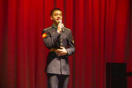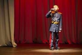 Открыл концертную программу кадет 7 «Б» класса Артём Кравченко стихотворением «Ответ сыну». Затем воспитанник 5 «А» Аксайского кадетского корпуса Ярослав Кирин исполнил песню «Прадедушка». Стихотворение «Баллада о красках» прочёл кадет 7 «Б» Хасан Калицев. Вокальный номер продолжил концертную программу. Максим Моргунов из 7 «Б» класса АДЕККК исполнил песню «Рисуют мальчики войну». С композицией «Глядят на нас фронтовики» его сменили воспитанники 6 «Е» класса Ставропольского ПКУ. Александр Алекторов (7 «Б») выступил со стихотворением «Баллада о танке «Т-34». Затем концерт продолжился вокальными номерами. Песню «Горячий снег» исполнил Андрей Марголин (7 «А»), песню «Да в саду дерево цветет» спел хор АДЕККК. Певцов сменили танцоры – с хореографическим номером «Донские Казаки» выступил ансамбль АДЕККК. Стих «Папе на фронт» проникновенно прочёл Захар Заболотский из 6 «Б» класса. После него на сцене кадет 11 «Б» класса Аксайского кадетского корпуса исполнил песню «Последний аккорд». Затем дуэт кадет 6 «Б» и 6 «Е» классов – Роман Кудряшов и Елисей Пьянков исполнили песню «Месяц май». «Ах эти тучи в голубом!» – так назывался вальс, который блестяще станцевали кадеты 6 «Е» класса Ставропольского ПКУ. Вокализ из кинофильма «Свой среди чужих, чужой среди своих» – с таким номером выступил кадет 7 «Е» класса Ахмад Джапаров, его сменил девятиклассник Иван Мирошников с песней «Бессмертный полк». Продолжилась концертная программа песней «Матерям погибших героев», которую исполнили совместно кадетский хор и оркестр СПКУ. Затем в исполнении солиста оркестра СПКУ прозвучала песня «Поклонимся великим тем годам».