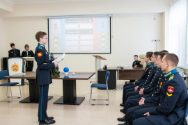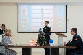 Проект заключается в создании игры по мотивам телевизионной передачи «Сто к одному» на выбранную тематику. Раскрыв процесс подготовки игры, Елена Константиновна показала, как можно организовать формирование беглости и гибкости мышления, на каких условиях происходил отбор и доработка идей. Самой интересной и запоминающейся частью мероприятия была демонстрация самой игры. Кадеты под руководством Натальи Александровны провели игру между педагогами и старшеклассниками, обучающимися по программе ДО «Интеллектуальный клуб». В упорной борьбе победила команда педагогов, сумевших проявить свою креативность и вырвать победу у лидирующей до последнего команды кадет.