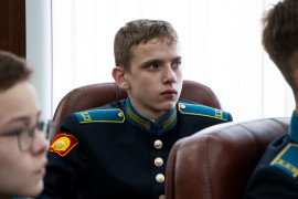 С Алексеем Владимировичем встречались кадеты-игроки команды «Кадетских баталий» этого года «Архаровцы». Ребятам было интересно узнать у знаменитого интеллектуала, возможно ли выиграть такие сражения, что главное в игре, как стать самым умным. Алексей Блинов с огромным удовольствием делился опытом и секретами мастерства.