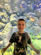 «У меня было очень увлекательное и интересное лето. В июне и июле я ездил на базы отдыха на Новотроицкое водохранилище. Мы отдыхали, купались в водоёме, катались на «Таблетке» и катамаранах. Было очень весело. В августе я со своими мамой и сестрой поехали в Чеченскую Республику, а именно в город Грозный. В Грозном очень красиво. Я был в «Сердце Чечни» – в главной Мечети. В ней находится самая большая люстра в мире. Ещё возле Мечети стоит дерево оливы с масштабом 1 к 1, в тени которого отдыхал Пророк Муххамад. Образец дерева сделан с помощью 3D моделирования. В Грозном очень много необычных зданий, например, «Дом-копейка». В ночном городе очень красиво, всё светится яркими огнями. Мы поднимались на здание, в котором 33 этажа и смотрели на ночной город. Это было завораживающе. Мы были на Нихалойских водопадах. Приехав туда, в первую очередь я увидел большую горную реку. Там было много больших и красивых водопадов. Очень красивая природа, много зелени и прекрасных скал. Ещё я был в дельфинарии, мне там очень понравилось. В Грозном есть Динопарк, который я посетил и увидел там модели динозавров. Они были очень большие и интересные. Мне очень понравился город Грозный. Он поразил меня своей красотой. Там очень доброжелательные и гостеприимные люди. После мы поехал в город Краснодар. Посетили парк «Краснодар», гуляли на озере в «Немецкой деревне».