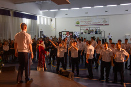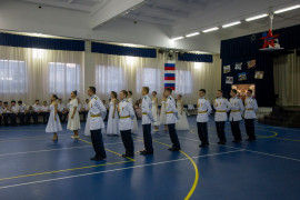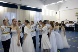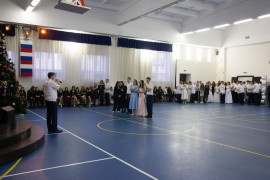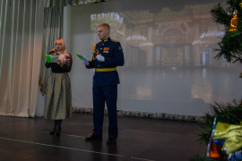 Новогодний бал состоялся у воспитанников 7 учебного краса Ставропольского президентского кадетского училища. В начале мероприятия распорядители бала педагог-организатор Оксана Сергеевна Романова и воспитатель Дмитрий Владимирович Корыпалов зачитали приказ для кадет 7 курса.