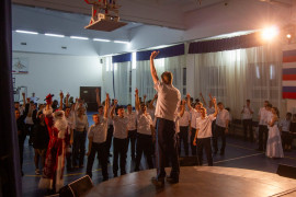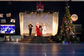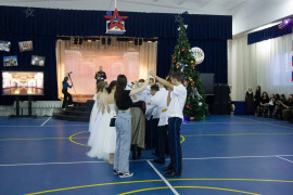 Кульминационным моментом новогоднего бала стало появление Деда Мороза и Снегурочки, которые провели розыгрыш праздничной лотереи и вместе с Михаилом Сидоровым показали зажигательный флэш-моб, в который включились все присутствующие. Кадеты и сотрудники учебного курса 11-х классов поздравляют всех с наступающим Новым годом! Пусть наступающий год станет временем открытий и самопознания. Пусть Змея наградит гибкостью и способностью адаптироваться к разным ситуациям