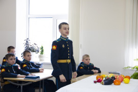 «Плоды – маленькая капсула для большой жизни» – так называлась тема урока. Кадеты легко справились с расшифровкой и обоснованием смысла фразы, подчеркнув, что плоды защищают семя – будущее растение, которое может прожить на земле даже тысячу лет.