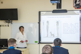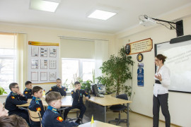 Мария Сергеевна Камышан познакомила семиклассников с историей дня «когда Дунай потёк вспять и небо упало на землю» и вместе с кадетами развенчала известный миф, отражённый в картинах и гравюрах, посвящённых взятию Измаила, о внешнем виде и устройстве знаменитой неприступной крепости. Для кадет стал открытием малоизвестный факт о том, что лучшая крепость XVIII века была построена из земли, а не из камня как принято считать. Также кадеты попробовали себя в роли великого полководца Александра Васильевича Суворова и методом мозгового штурма решали боевые задачи, стоящие перед штурмующими крепость. Например, как послать сигнальную ракету о начале штурма незаметно для врага.