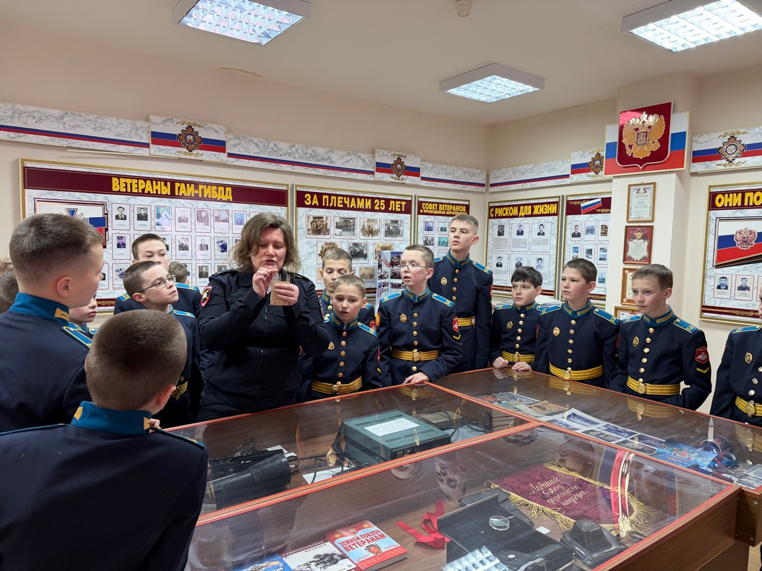 Кадеты учебного курса 5-х классов Ставропольского президентского кадетского училища в составе: 5 «Г» (воспитатель Дмитрий Сергеевич Гутенёв) и 5 «Д» (воспитатель Анатолий Николаевич Кудрявцев) - посетили отдельный батальон ДПС ГИБДД ГУ МВД по городу Ставрополю. Кадетам рассказали об образовании Госавтоинспекции с 1936 г, поэтому в этом году этому ведомству исполняется 90 лет.