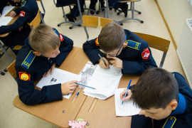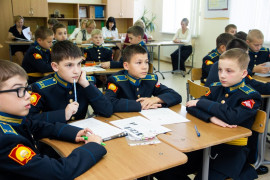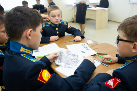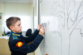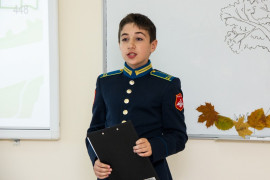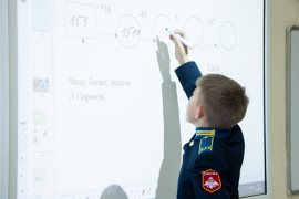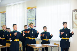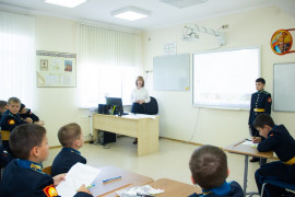 Одной из особенностей занятия было то, что преподаватель математики проводила урок «Путешествие начинается» совместно с кадетом 5 «В» класса Алиасхабом Сатиаджиевым.