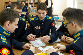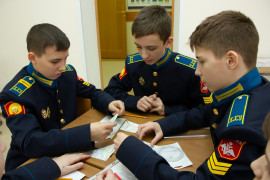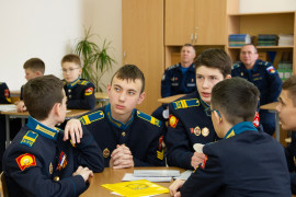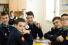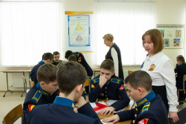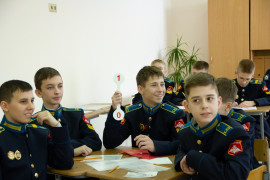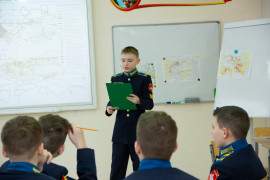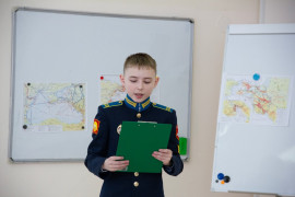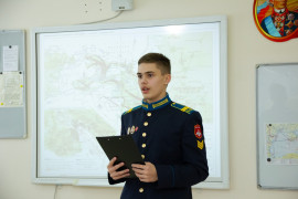 Внеурочное мероприятие «Стратегии с точки зрения математики. Математическое моделирование Математическое моделирование боевых действий Великой отечественной войны» прошло под девизом экипажа ракетного катера под командованием капитан-лейтенанта М.Г. Бондаренко «Каждому дню учебы – отличный результат» в форме деловой игры. Кадеты выступили в ролях: военного корреспондента, шифровальщика, военного топографа, в завершении мероприятия аналитические отделы подвели итоги, проанализировав работу всех структурных подразделений.