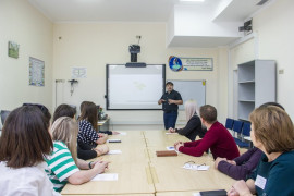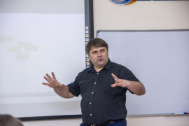 Мастер класс «Может IT?» – проекты с воспитанниками и педагогами» провёл преподаватель математики Виктор Борисович Копылов. Он рассказал гостям, что за последние 10 лет было создано множество учебных проектов вместе с кадетами 8-11-х классов в сфере информационных технологий. Пришло время поделиться опытом в этой сфере, надеясь на конструктивную беседу по такой актуальной теме. Затем он раскрыл технологию реализации IT-проекта как способа обучения, а также затронул технические аспекты, которые помогли достигнуть результата.