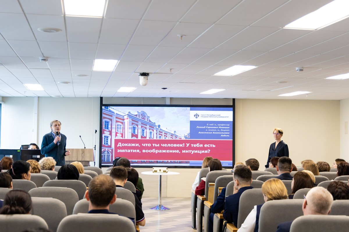 Ключевым событием стала проектная сессия «Методический конструктор», которую провели учёные Института педагогики СПбГУ – Леонид Илюшин, доктор педагогических наук, профессор, член Совета по образовательной политике при Комитете по образованию Санкт-Петербурга, и Анастасия Азбель, кандидат психологических наук, доцент.