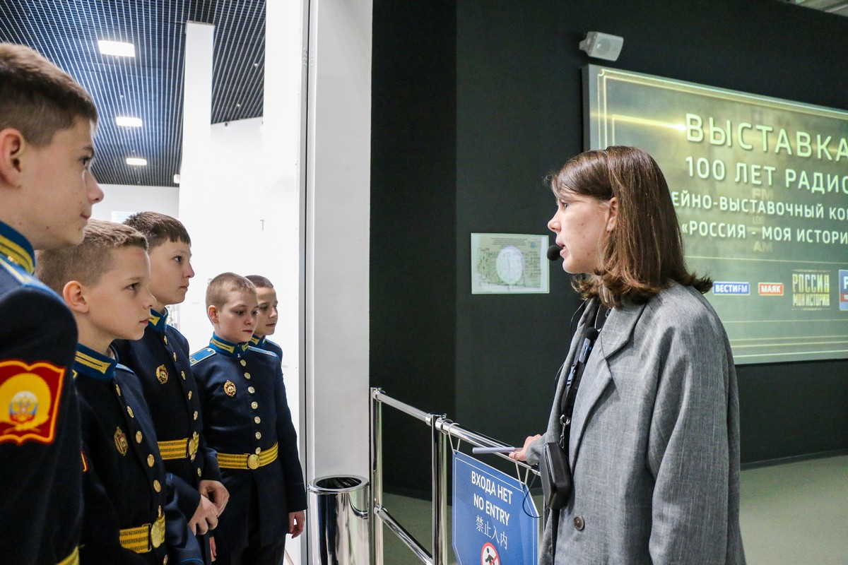 Воспитанники Ставропольского президентского кадетского училища, занимающиеся по программам дополнительного образования «Фотостудия» и «Основы редакторского дела» (руководитель – педагог дополнительного образования Анна Сергеевна Максименко), посетили музейный комплекс «Россия – моя история». Экскурсия была посвящена знаменательной дате – 100-летию Ставропольского краевого радио.