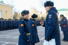 — Поздравляю личный состав училища с очередным пополнением кадет, а новый набор — с принятием клятвы, — сказал Вячеслав Валерьевич Преснухин.