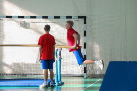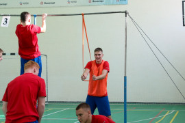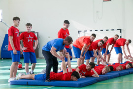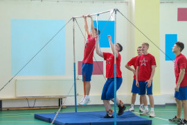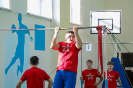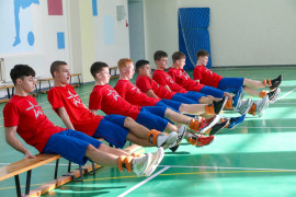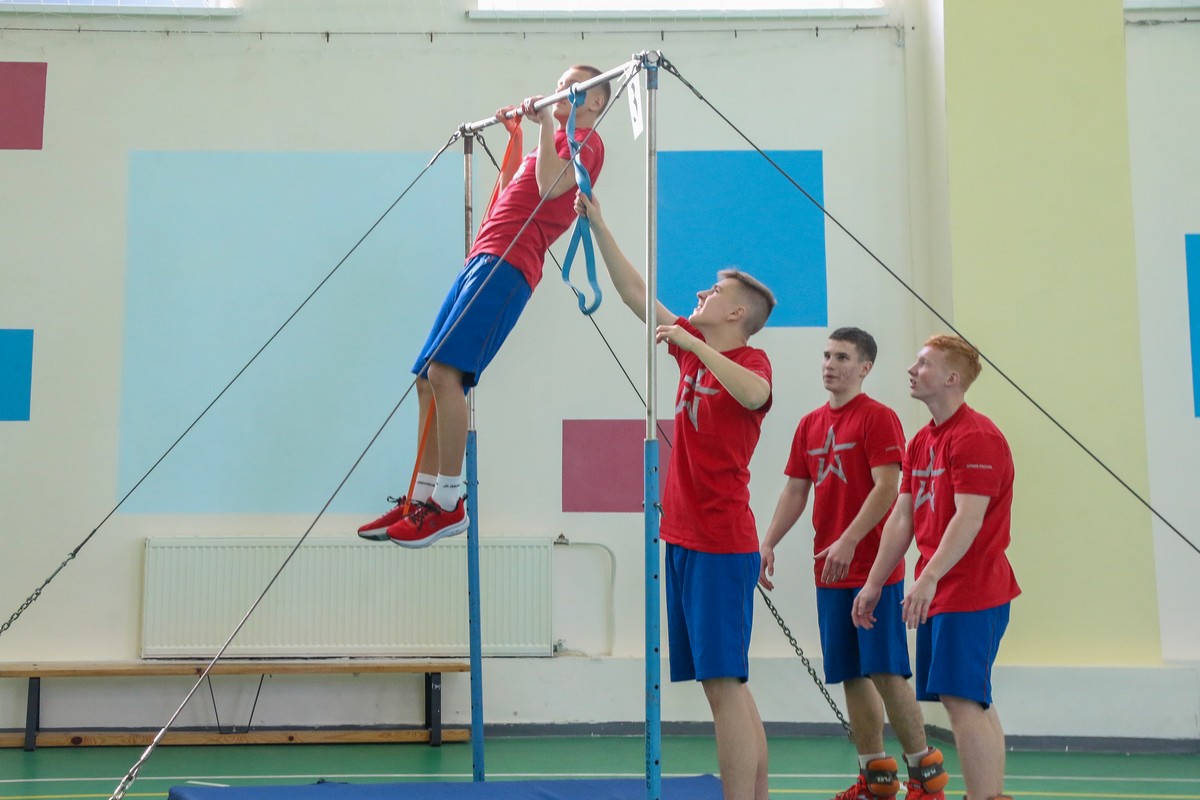 На занятии кадеты выполняли подтягивание и другие упражнения с латексной резинкой, с гантелями, с утяжелителями для ног. Укрепляли мышцы ног, рук и пресса. Резинка создаёт сопротивление, которое увеличивает нагрузку на мышцы при выполнении упражнений. Утяжелители для ног (специальные манжеты с весом, которые закрепляются на щиколотках для увеличения нагрузки во время тренировок) также имеют ряд преимуществ в использовании на тренировках – они помогают ускорить рост и укрепить мышцы, развивают выносливость. А кроме того, делают занятие физической культурой более разнообразным и интересным.