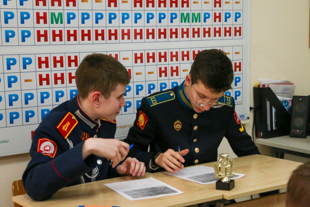 Кадетам пришлось решать самые разнообразные задания из области химии, биологии, физики, математики, угадывали имена ученых по их открытиям.