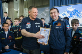 Во время встречи Виталий Иванович также вручил двум кадетам СПКУ - Никите Русакевичу и Артёму Власову - сертификаты за их восхождение на высочайшую точку Европы - Эльбрус. Получить такие сертификаты из рук "Снежного барса" - особая честь.