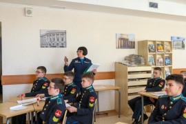 В Ставропольском президентском кадетском училище прошло открытое внеурочное мероприятие, которое заставило семиклассников заглянуть вглубь веков, чтобы найти истоки мужества, чести и верности Родине. Классный руководитель 7 «Б» класса Ольга Александровна Бондаренко провела для своих воспитанников занятие на тему «Богатыри земли Русской» – разговор, соединивший былинную старину и современное понимание воинского долга.