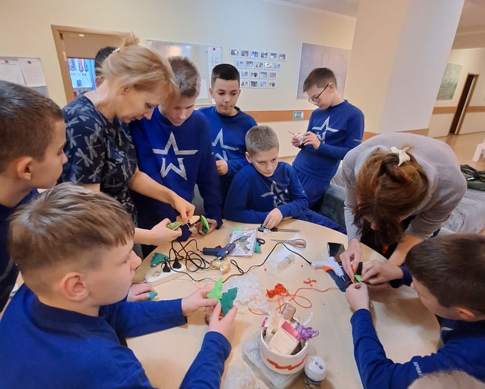 Воспитанники второго учебного курса Ставропольского президентского кадетского училища накануне новогодних и рождественских праздников своими руками подготовили подарки для бойцов специальной военной операции. Особенным событием стал совместный мастер-класс «Игрушка — солдату», на котором родители и кадеты 6 «Б» класса (классный руководитель Елена Владимировна Ушакова) мастерили ёлочные украшения к Новому году.