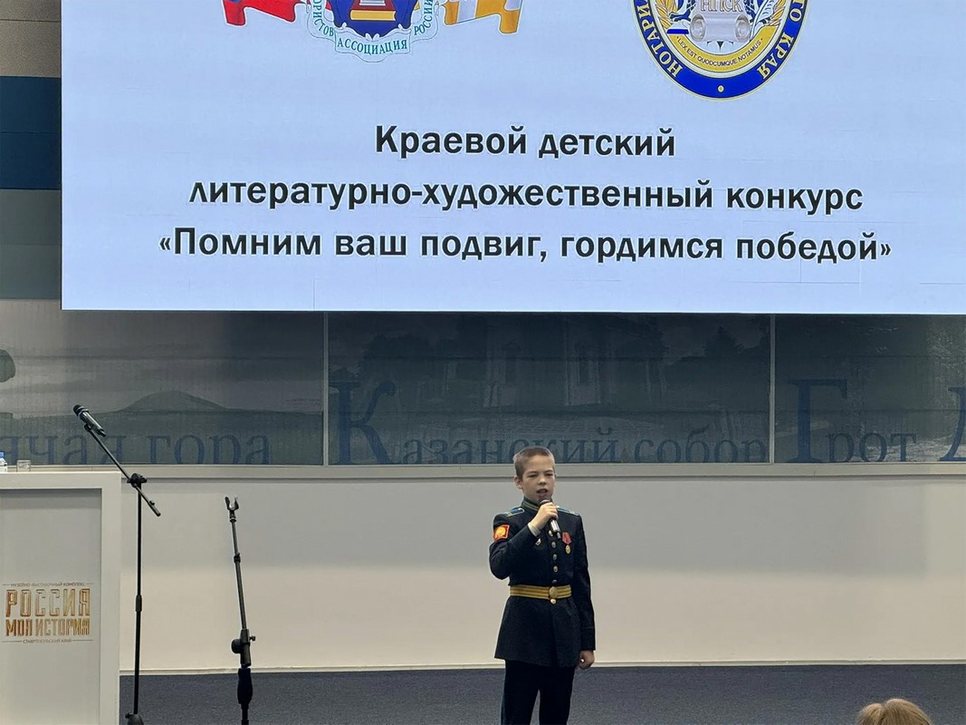 Среди победителей и призёров номинаций оказались кадеты СПКУ. Победителем в номинации литературное творчество «Герои стоят на защите Отчизны и нашей счастливой жизни» стал Першин Александр 6В класс (руководители педагоги ДО «Кадетский театр. Искусство побеждать» Оксана Сергеевна Романова и Елена Григорьевна Сиротова).