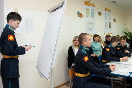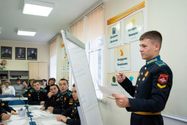 В рамках конкурса профессионального мастерства «Педагог года – 2024» в Ставропольском президентском кадетском училище прошло очередное конкурсное внеурочное мероприятие. Классный час на тему «Семейные ценности как основа и будущее России» с кадетами 10 «А» класса провел их воспитатель – Евгений Александрович Бердников.