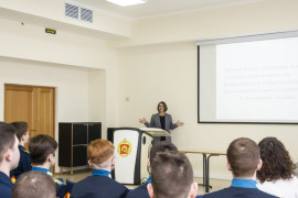 В рамках Фестиваля «Научная среда – 2023» в Ставропольском президентском кадетском училище состоялась открытая лекция «Проблемы русского языка в свете лингвистической экспертизы», которую провела доцент кафедры русского языка Северо-Кавказского федерального университета, кандидат филологических наук Эльвира Петровна Лаврик.