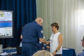 С докладом на тему «О мерах по обеспечению безопасности в училище, жизни и здоровья участников образовательного процесса, охраны труда сотрудников» выступили помощник начальника училища по безопасности Евгений Сергеевич Волков и инспектор по охране труда и технике безопасности Александр Фёдорович Чумак.