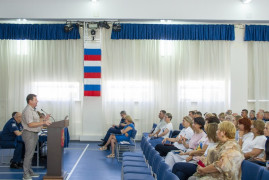 В Ставропольском президентском кадетском училище, пока продолжаются летние каникулы для воспитанников, педагоги готовятся к новому учебному году. На последней неделе августа в СПКУ проходят организационно-методические мероприятия, посвящённые началу 2023-2024 учебного года. Одно из мероприятий в рамках методических сборов – общее собрание трудового коллектива училища.