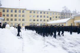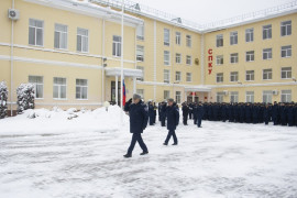 В Ставропольском президентском кадетском училище общеучилищное построение личного состава открыло новую учебную неделю. По традиции одним из лучших кадет было предоставлено право торжественно поднять Государственный флаг Российской Федерации под всеобщее исполнение Гимна страны.