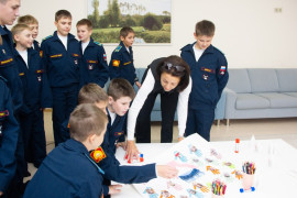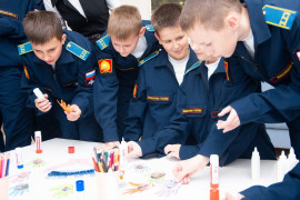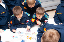 Поэтому очень важно создать условия, позволяющие каждому воспитаннику учебного курса 5-х классов как можно легче и радостнее вступить в новый этап обучения. Педагог-психолог Евгения Васильевна Головкова и кадеты учебного курса 11-х классов Сергей Куликов, Антон Мирошников, Владимир Калюжный организовали и провели тематическую психологическую акцию «Тёплые руки, храброе сердце» в рамках реализации программы мероприятий недели психологии в Ставропольском ПКУ. Старшие наставники-кадеты предложили пятиклассникам выполнить совместную коллективную работу «День общения или «Вместе мы одна семья». Чтобы поддержать и развить в пятиклассниках интерес к знаниям, помочь им общаться с новыми одноклассниками и педагогами, 11 класс использовал эмоционально окрашенные приёмы работы.